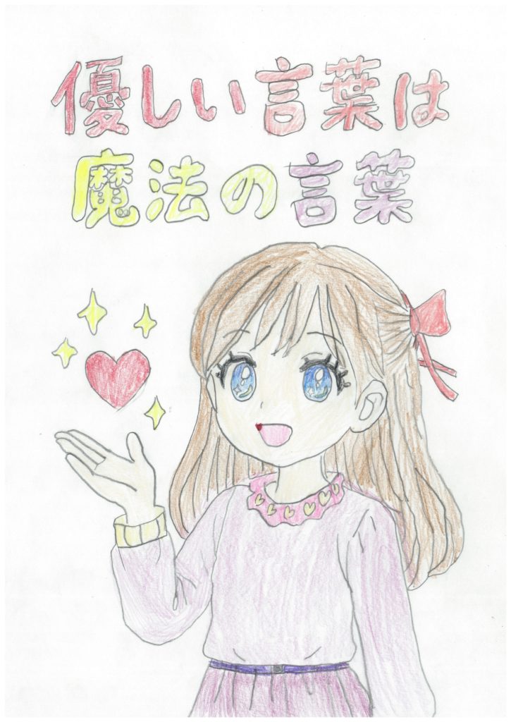 お子さんの、「やさしい言葉には人を元気にする力がある」という思いを込めて温かい作品を描いてくれました。